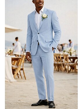 Мужской Льняные костюмы Свадьба на пляже Белый Небесно-голубой Весна лето Костюм Лацкан с тупым углом Формальная Однотонный Приталенный крой Набор из 2 предметов Однобортный с 2 пуговицами