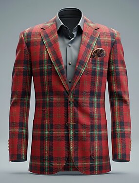 Муж. Твидовый пиджак Воротник с вырезом Мода Для вечеринки На каждый день В клетку Blazer Твидовый блейзер Красный Узкий крой Однобортный с двумя пуговицами