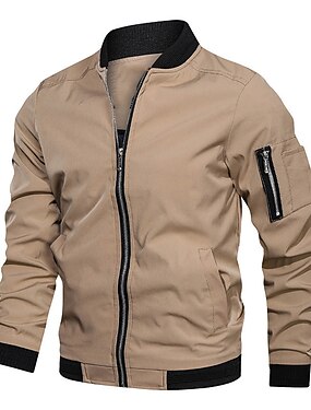 Муж. Куртка бомбер Куртка переходного периода выходные Прочный На каждый день Карман Все сезоны Полотняное плетение Удобная обувь Для отдыха Воротник-стойка Обычная