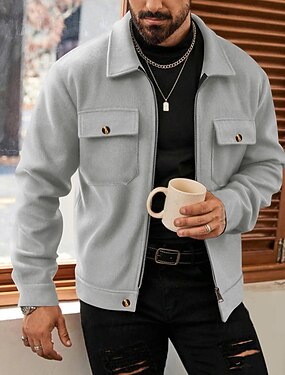 Муж. Легкая куртка Куртка-карго Повседневная куртка Отпуск Повседневные Сохраняет тепло Карман Осень Зима Полотняное плетение Мода Классика Лацкан Обычная Черный Винный Светло-серый Жакеты