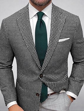 Муж. Пиджак Спортивная куртка Закрытие воротника На открытом воздухе На каждый день Гусиная лапка Клетчатый Черный Желтый Светло-зеленый Узкий крой Однобортный с двумя пуговицами