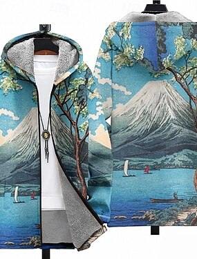 Муж. Пейзаж Зимнее пальто Флисовая жилетка Пальто Сохраняет тепло Удобный На каждый день На каждый день Молния Карман 3D печать Осень Зима Капюшон Длинный рукав Красный Зеленый