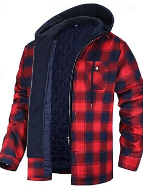 Муж. Зимнее пальто Пальто тедди Повседневная куртка на открытом воздухе Повседневные Сохраняет тепло Карман Полный почтовый индекс Осень Зима В клетку Уличный стиль Спорт и отдых Капюшон Обычная