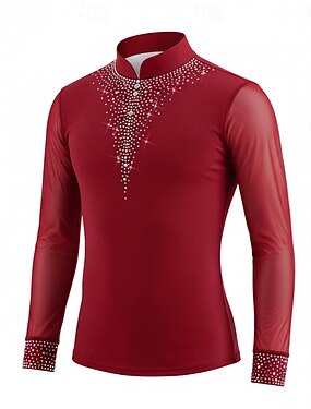 Флисовая куртка для фигурного катания Топы для фигурного катания Муж. Катание на коньках Топы Красный Пэчворк Эластичная Учебный Соревнование Одежда для фигурного катания Классика Стразы Длинный рукав