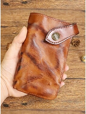 Мужской длинный кошелек из натуральной кожи, вместительный, винтажный, складной, с держателем для карт, в ретро-стиле, разноцветный, тонкий и компактный дизайн для повседневного ношения, путешествий, деловых встреч и отдыха.