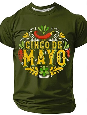 Мужская футболка Cinco de Mayo с изображением перца чили в мексиканском стиле, красочная, с цветочным принтом, коротким рукавом, круглым вырезом, повседневная, для праздников, дизайнерская одежда,