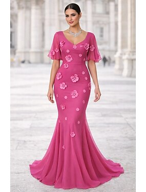 Футляр В пол Свадебное платье для гостей Вечернее платье Выпускные платья Элегантный стиль С короткими рукавами V-образный вырез Выпускной Официальные Пайетки Бархат Вырез с драпировкой на спине с
