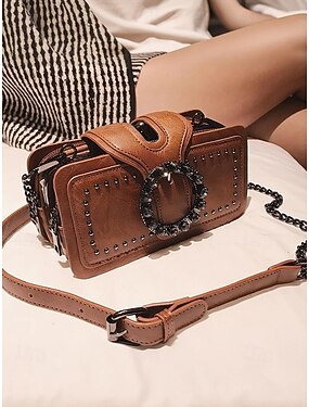 Вместительная женская сумка через плечо из искусственной кожи с цепочкой, винтажным дизайном и заклепками, разноцветная, идеально подходит для ежедневных поездок, путешествий, свиданий и прогулок.