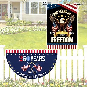 2 шт. садовых флага США к 250-летию &Флаг-баннер, нескладчатый флаг-веер, двусторонний патриотический дизайн с орлом и американскими флагами, памятный баннер 1776-2026, 12 x 18 дюймов. &2 x 4 фута