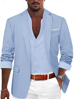 Муж. Пиджак Льняной блейзер Воротник с вырезом Мода На каждый день Однотонный Blazer Пыльно-синий Светло-серый Темно-синий Узкий крой Однобортный с 1 пуговицей