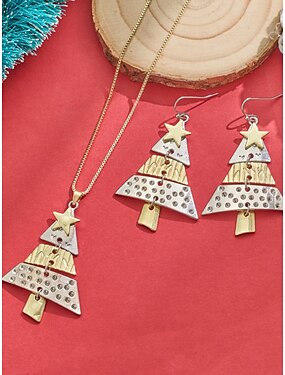 Женский комплект из ожерелья и серег в виде ёлочки, золото и серебро, праздничный подарок к празднику
