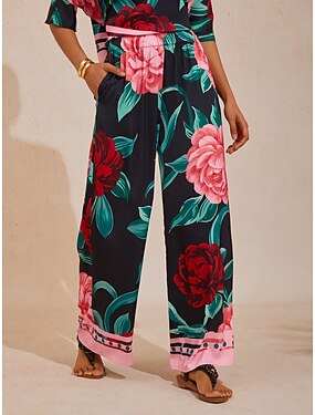 летние ночные пальмовые шелковистые атласные прямые брюки
