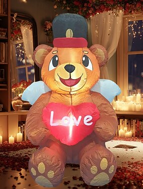 Надувная декорация ко Дню святого Валентина высотой 1,2 м/4 фута со светодиодной подсветкой, плюшевый мишка, держащий сердце, идеально подходит для вечеринок в помещении и на открытом воздухе, свадеб,