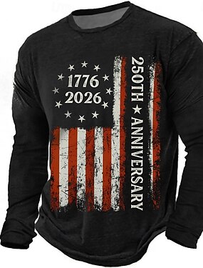4 июля 2026 года 250-я годовщина Дня памяти Мужская дизайнерская футболка с 3D-принтом с американским флагом с круглым вырезом и длинными рукавами для повседневного ношения на улице