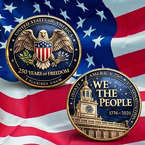 Памятная монета США к 250-летию (1776-2026), патриотическая медаль с изображением белоголового орла, e pluribus unum, 250 лет свободы, коллекционный подарок по американской истории.