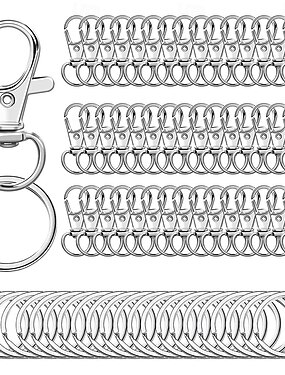 100 карабинов с поворотными кольцами для ключей, 50 крючков-клипс для брелоков и 50 колец для ключей, карабины-карабинки для брелоков, ювелирных изделий, рукоделия