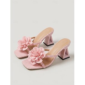Розовые женские босоножки на каблуке с цветочным принтом – летние туфли с открытым носком и скульптурным каблуком для ужина в курортном отеле или вечернего отдыха. &пляжная вечеринка