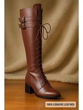 Женские сапоги до колена из натуральной кожи, материал из высококачественной коровьей кожи, шнуровка и пряжка, блочный каблук, городская повседневная обувь для женщин
