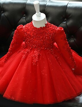 Дети (1-4 лет) Девочки Платье для вечеринки Сплошной цвет Длинный рукав Выступление Пайетки Сетка Симпатичные Стиль Принцесса Полиэстер До колена Платье из тюля Лето Весна 3-7 лет Красный Серый