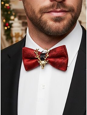 мужской бархатный галстук-бабочка с золотой булавкой в виде головы оленя, элегантный регулируемый галстук в нескольких цветах, идеально подходит для рождественских вечеринок, свадеб и официальных праздничных мероприятий