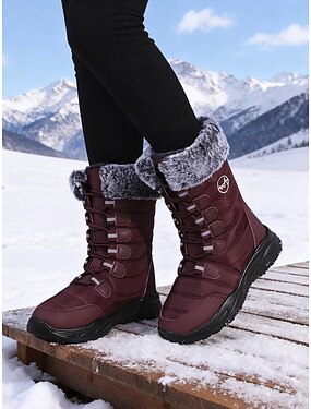 Женские зимние ботинки бордового цвета с флисовой подкладкой — водонепроницаемые, с удобной застежкой-молнией, удобные для ходьбы по снегу, путешествий и повседневной носки