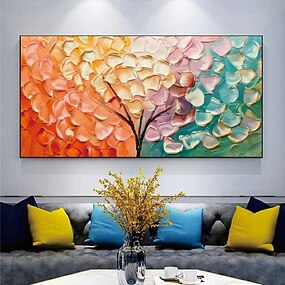 Hang-роспись маслом Ручная роспись Вертикальная Абстракция Цветочные мотивы / ботанический Современное Включите внутренний каркас