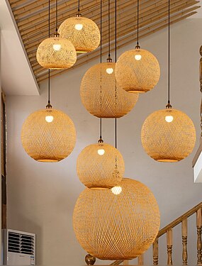 Бамбуковая люстра в стиле ретро, люстра из ротанга e26/e27, потолочное освещение применимо для гостиной, спальни, ресторана, кафе, бара, ресторана, клуба, 110-240 В
