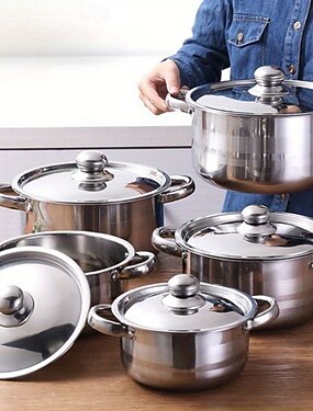 Набор посуды из нержавеющей стали - прочная кухонная кастрюля с крышкой, полированной внутренней стенкой, заклепочной ручкой и термостойкой ручкой