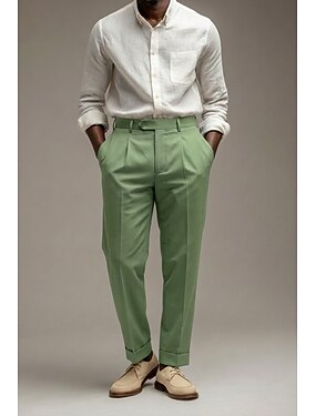 Мужской Хлопок Лён Костюм Повседневные брюки Официальные Встреча Легкие Классика На каждый день Полупрозрачный зеленый Бежевый Лето Брюки Сплошной цвет Стандартный Длиные Неэластичная
