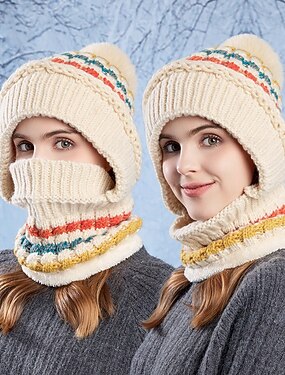 Женский зимний комплект из 3 предметов: мягкая шапка из искусственного меха, дышащая маска и вязаный шарф с флисовой подкладкой, доступен в нескольких цветах, идеально подходит для холодной погоды и активного отдыха на свежем воздухе.