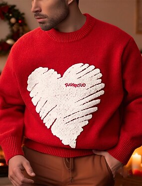 Муж. Рождественские свитера Пуловер Свитер Свитер с узором Fair Isle Вязаный свитер Рельефный узор Вязать Обычные топы Трикотаж С сердцем Вырез под горло Винтаж Мода Рождество Отпуск Одежда Осень Зима
