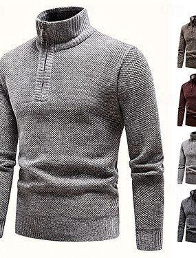Муж. Рождественские свитера Свитер с высоким воротом Пуловер Свитер Вязаная одежда Рельефный узор Вязать Обычные топы Классический Полотняное плетение Хомут Сохраняет тепло Современный современный