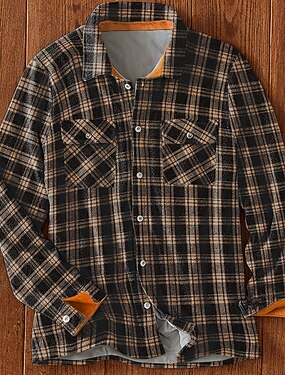 Муж. В клетку Флисовая рубашка Куртка-рубашка Верхняя рубашка Длинный рукав Винтаж На каждый день на открытом воздухе Для улицы На каждый день Наступила зима Отложной Рубашки с воротником Пуговицы 3D
