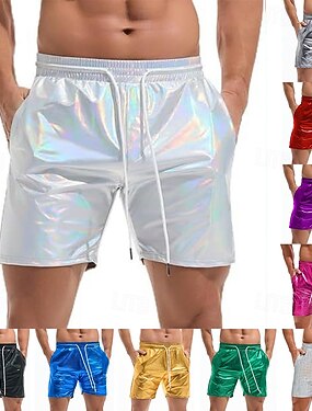 Муж. Шорты в стиле диско Шорты Повседневные шорты Карман Эластичная талия Гладкая ткань Один цвет Комфорт Дышащий Выше колена Пляж Отпуск Для вечеринок Отпуск Мода Синий Серебряный Неэластичная