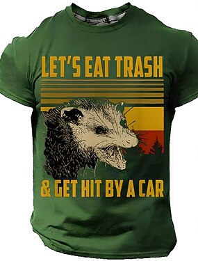 Забавный мем с опоссумом: «Давайте съедим мусор и попадем под машину», ретро-винтажная мужская футболка лесного зеленого цвета, графическая футболка, одежда, размеры S M L XL XXL XXXL