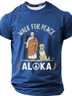 Мужская футболка «Прогулка за мир» с изображением монаха и собаки Алока, буддийская тематика, сострадание, осознанность, короткий рукав, круглый вырез, летняя повседневная мода, одежда, размеры S M L