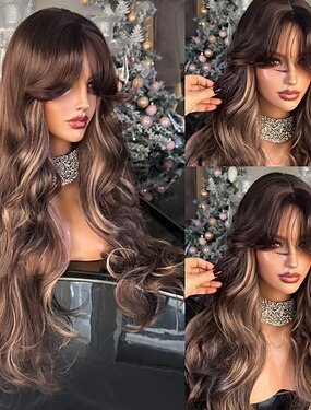 Натуральные волосы Закрытие 5x5 13x4 Кружева Фронт Парик Свободная часть Бразильские волосы Волнистый Коричневый Парик 150% 180% Плотность волос