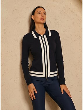 Жен. Вязаная ткань Винтаж Повседневные Хомут Открытый перед Молния Трикотаж Длинный рукав Обычные топы Вязать Повседневные Белый Темно синий Осень Зима