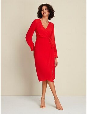 Жен. Платье средней длины Коктейльные платья Свадебное платье для гостей Шифон Мода Современное Летучая мышь на открытом воздухе Отпуск Стандартный Полотняное плетение Рукав 3/4 V-образный вырез