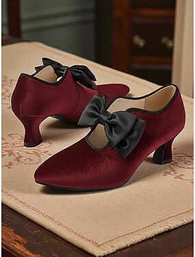 Женские туфли из черного бархата на каблуке-рюмочке с черным бантом — винтажные туфли в викторианском стиле для дам, идеально подходят для свадеб и вечеринок в стиле Гэтсби. &официальные вечерние