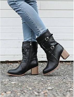 Жен. Ботинки Мотоциклетные ботинки Большие размеры Рабочие ботинки на открытом воздухе Офис Повседневные Сапоги до колен Блочная пятка На толстом каблуке Круглый носок Элегантный стиль Мода Классика