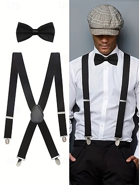 Мужской комплект из регулируемых подтяжек и галстука-бабочки — классический официальный аксессуар для свадеб, вечеринок и деловых мероприятий.