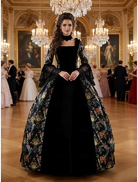 Винтаж Рококо Эпоха возрождения Макси Платья Нормальная Длинный с фонариком Золушка Цветы Принцесса Квадратный вырез Маскарадный костюм Все Королевский Хэллоуин Карнавал Маскарад