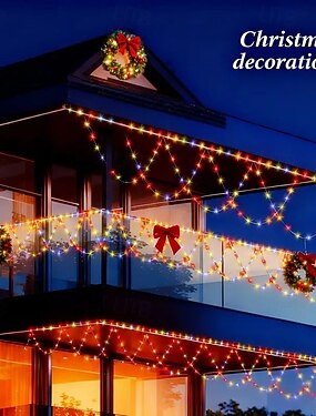 138 светодиодных гирлянд для карнизов, работающих от солнечных батарей/USB, с 8 режимами работы для украшения стен, заборов, крыльца и сада.