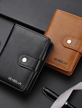 Комплект из 2 мужских коротких складных кошельков из винтажной искусственной кожи с застежкой на кнопку и молнию, отделением для монет, большой вместительностью, несколькими отделениями для карт,