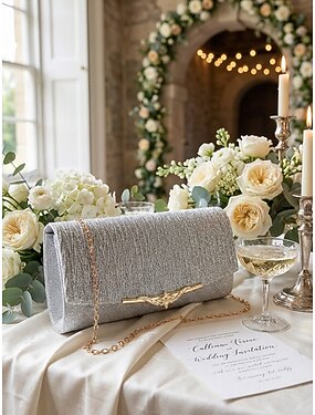 элегантный вечерний клатч с золотыми блестками - женская праздничная сумочка с цепочным ремешком и декоративными металлическими вставками для свадеб и официальных мероприятий