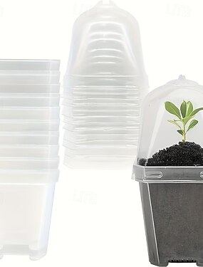 10 прозрачных горшочков для рассады с куполами для поддержания влажности, квадратные пластиковые контейнеры с крышками и основаниями, воздухопроницаемые и теплоизолирующие, подходят для рассады,