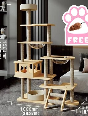 69-дюймовое кошачье дерево/домик на дереве и башни для большой кошки/дерево для лазанья кошки с домиком для кошки/когтеточка на дереве/многоуровневое большое кошачье дерево