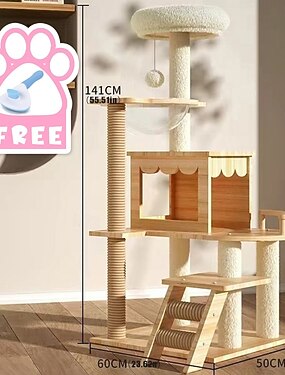 70-дюймовое кошачье дерево/домик на дереве для кошек и башни для больших кошек/дерево для лазанья кошек с домиком для кошек/когтеточка на дереве для кошек/многоуровневое большое кошачье дерево