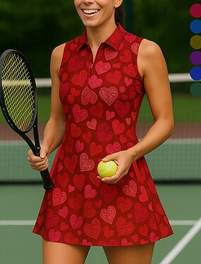 Жен. С сердцем Теннисное платье платье для гольфа Платье без рукавов Без рукавов Молния Эластичность Дышащий Теннис Гольф Бадминтон Воротник-поло Платья Розовый Военно-зеленный Красный